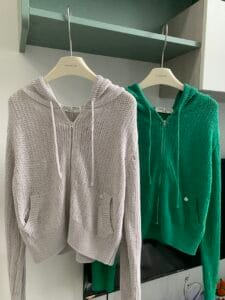 慵懒感棉针织拉链连帽外套